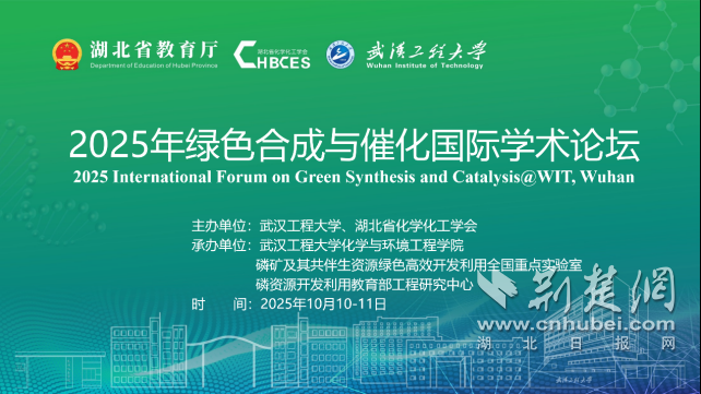 荆楚网(湖北日报)(通讯员 林山 薛文轩 李阳)10月10日至11日,由武汉工程大学和湖北省化学化工协会共同主办,武汉化学与环境工程研究院协办的“2025国际绿色合成与催化学术论坛”在武汉工程大学流芳校区举行。理工大学、磷矿及相关资源绿色高效开发利用国家重点实验室、磷矿资源开发利用教育部工程研究中心。