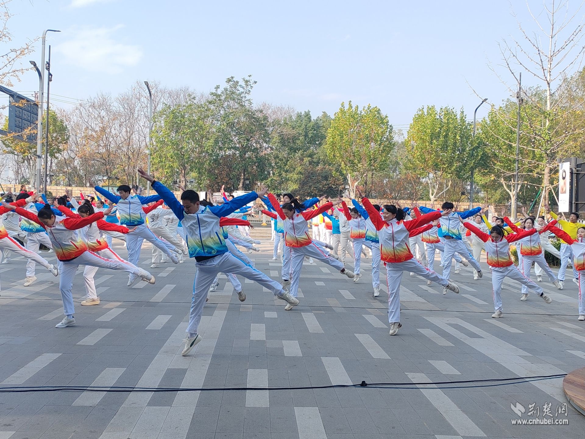 随着《领航员》庄严的旋律响起,武昌黄鹤星文化局、区艺术队、武汉音乐学院学生等共计140支表演队翩翩起舞。舞者们身着鲜艳的服装,洋溢着自信和热情冬日的阳光下,他们的步伐干净利落,动作有力,像一面飘扬的旗帜一样自由动感。在武汉歌舞剧院徐峰老师的现场指导下,整个演出轻松而富有情感,生动地表现了新时代的活力和力量,赢得了观众的掌声和欢呼。