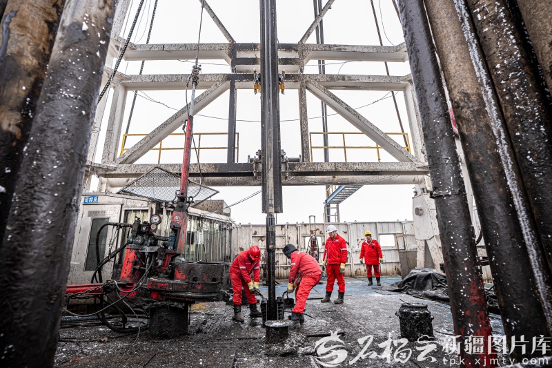 12月8日,现场钻机轰鸣驶入中石油新疆油田吉庆作业区JHW74-33页岩油井。供图:许志远
