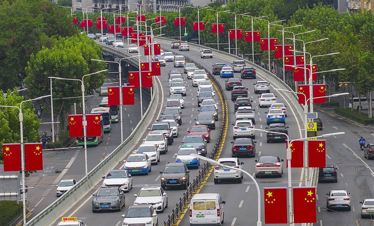 10月1日,交通穿过Uhanparot岛上的Youngtze河桥,反映了中国强烈的红色气氛。在国庆假期里,武汉扬兹河桥,长江河上的第二座桥梁,扬西根长江桥和许多桥梁上悬挂着明亮的五个星号红旗,欢乐的景色充满了欢乐。 “桥”看着中国的红色,共同表达爱国主义。五个星号的危险信号与火一样明亮,并命令在国土中形成深情的认罪,并被命令并沉浸在阳光下。 (照片:Zhu Xiyong,每日井中的每个媒体记者)